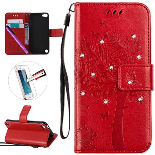 Embossing Butterfly Tree Leather Wallet Case For Ipod Touch Itouch 5 6 Red Leather Case Guuds
