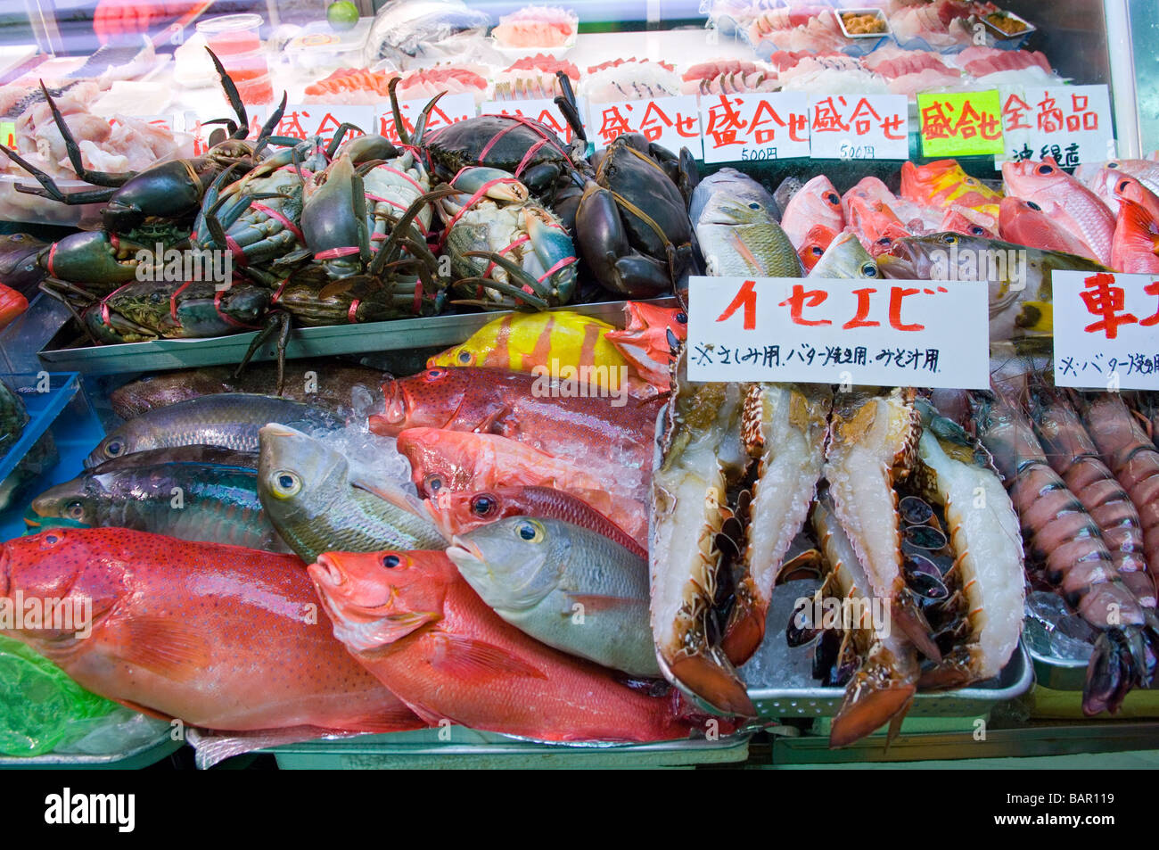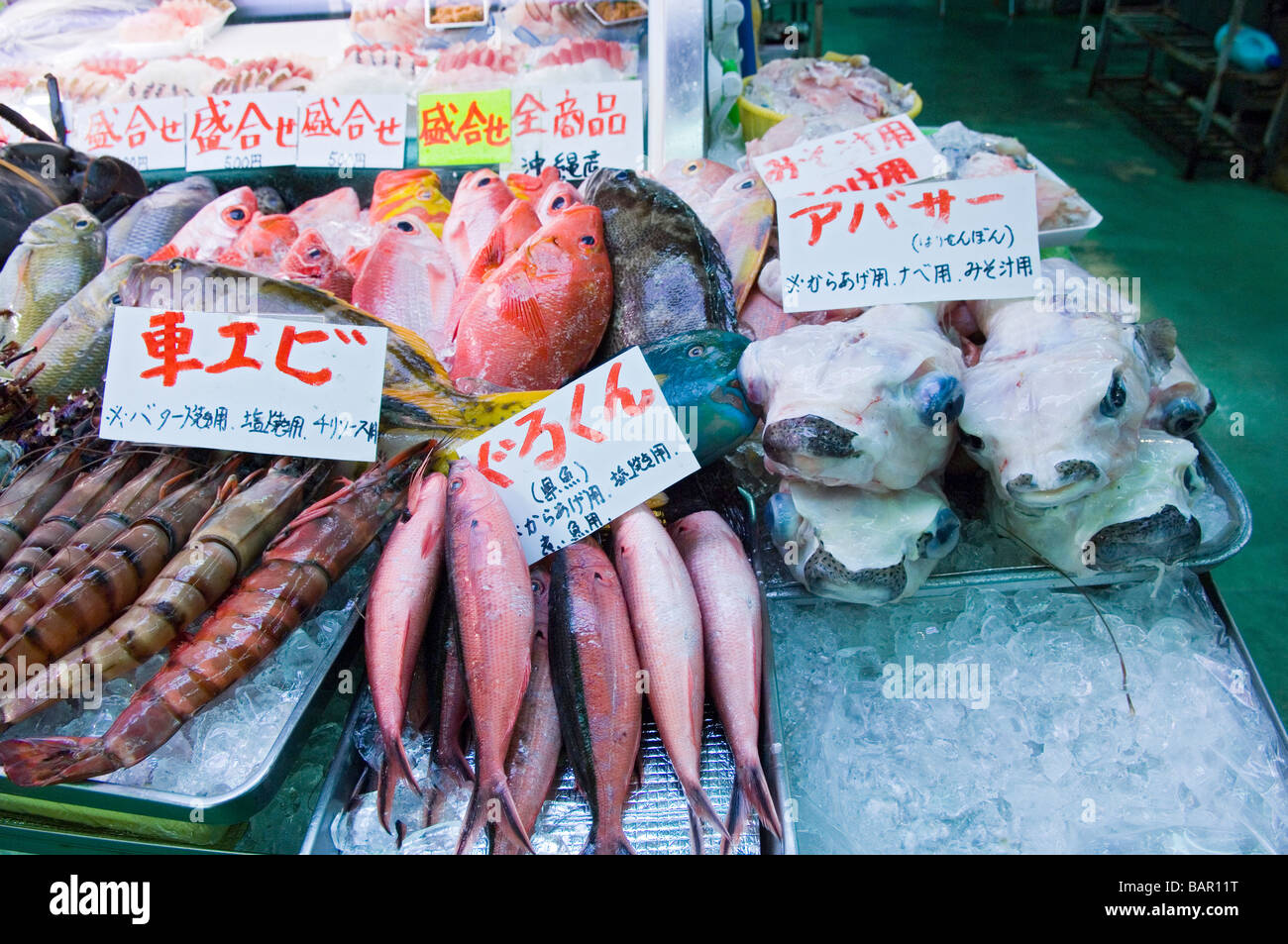 Fresh Fish And Seafood On Display Makishi Public Market Okinawa Stock Photo Alamy