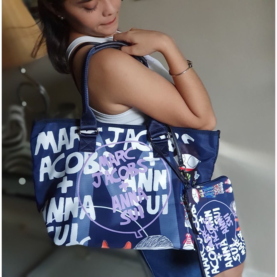 Marc Jacobs Navy Blue Anna Sui Large Logo Tote Bag With Pouch Shopee Philippines
