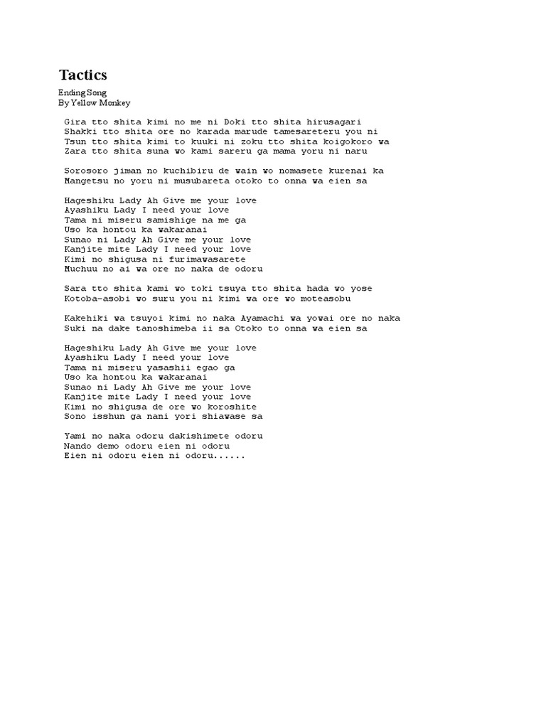Tactics Lyrics By The Yellow Monkey Gira Tto S A Kimi