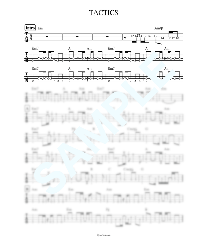 Tactics The Yellow Monkey ベース タブ譜 Bass Score