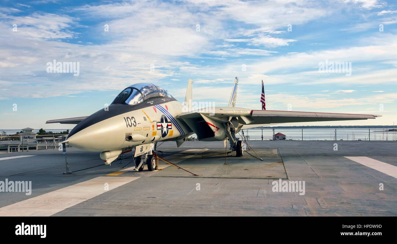 An American F 14 Tomcat Fighter Jet On The Deck Of The Aircraft Stock Photo Alamy