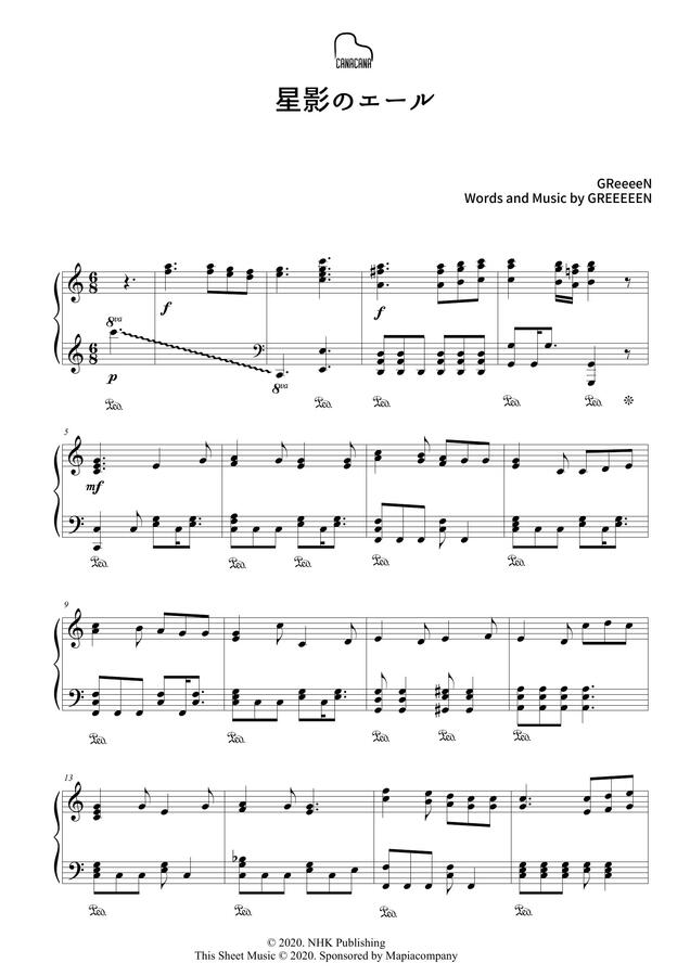 ピアノ楽譜 星影のエール Greeeen ソロ 中級 電子楽譜カノン