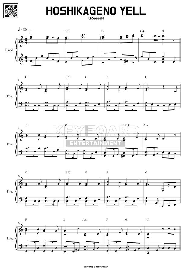 Hoshikageno Yell 별빛의 응원 Greeeen 그린 Piano Sheet Music Youtube