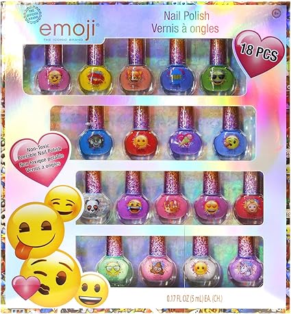 Amazon Com Townley Girl Iconic Emoji Non Toxic Peel Off Nail Polish Set For Girls Glittery And Opaque Colors Ages 3 18 Pack Health Personal Care