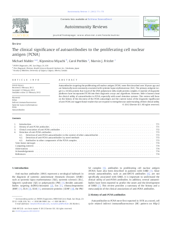 Pdf The Clinical Significance Of Autoantibodies To The Proliferating Cell Nuclear Antigen Pcna Carol Peebles Academia Edu