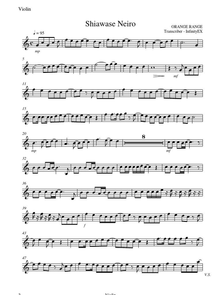 Code Geass R2 Shiawase Neiro Violin Sheet Music